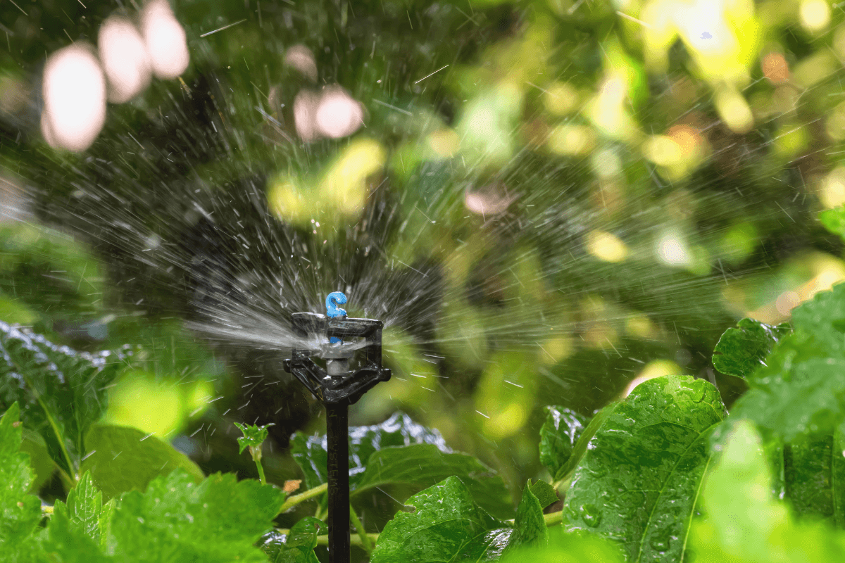 Riego por aspersión: para césped y jardines amplios.